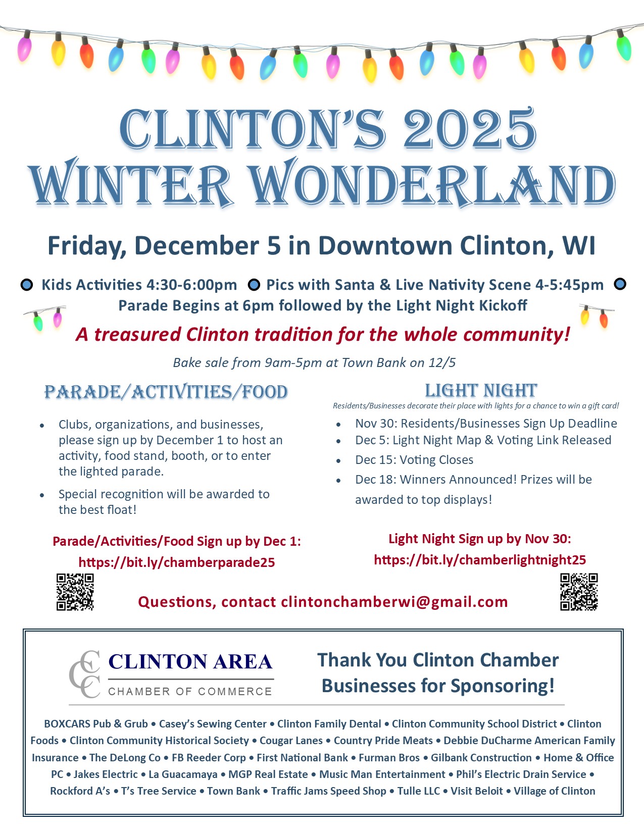 Founded in the 1800s The Village of Clinton is located only one mile off of interstate 43, providing a warm hometown feeling and a great place to raise a family, not to mention, sample the local businesses from the lovely Box Cars all the way to a great time bowling at Cougar Lanes! The Village of Clinton also features a top notch school system from elementary school all of the way to high school providing many sports and musical theater events for all ages to attend. All being supported by our wonderful local businesses.